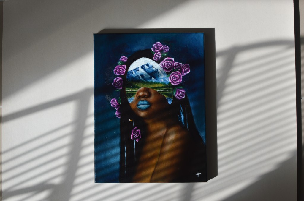 En plus d’utilisée une technique particulière, j’aime mélanger les outils ! Mes portraits comportent toujours une base au pinceau avec un élément qui sera fait au couteau. C’est une manière pour moi de créer du relief et apporter un élément différenciant à mes réalisations en combinant 2 outils qui n’étaient pas forcément fait pour se rencontrer et cohabiter ensemble sur une toile.